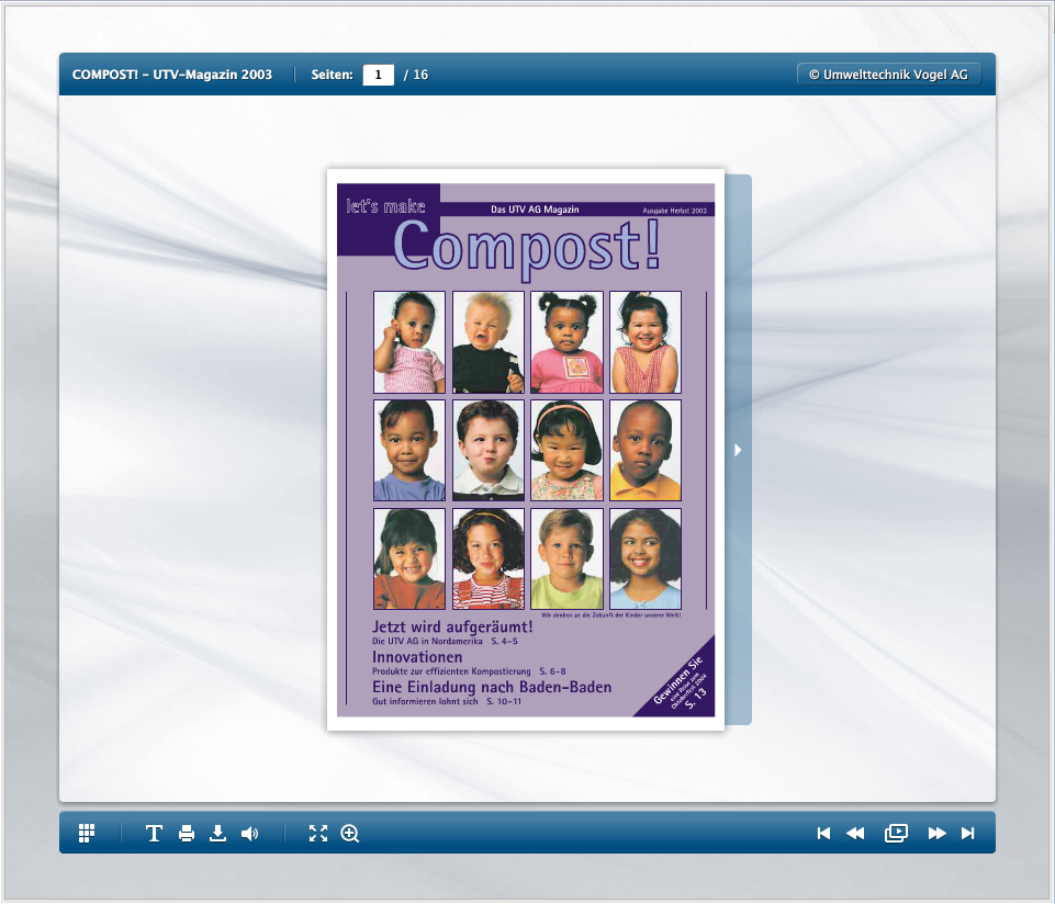 Ausführliche Informationen zur UTV AG und zur Technologie finden Sie in dieser Firmenzeitschrift. Blättern Sie durch das aktuelle UTV Magazin sowie durch die Magazine von 2003, 2005 und 2011 weiter unten. Alle Ausgaben stehen selbstverständlich auch zum Download zur Verfügung.