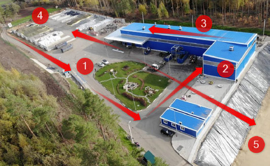 (1) Der angelieferte Hausmüll wird beim Eingang auf die Anlage gewogen. Somit lässt sich ein Stoffstrom der Anlage erstellen.