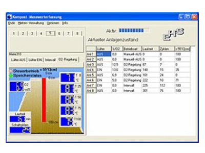 Die „icompmaster“ Steuereinheit regelt den Kompostierungsprozess, steuert und protokolliert dieTemperaturwerte, den Sauerstoffgehalt und den Druck.